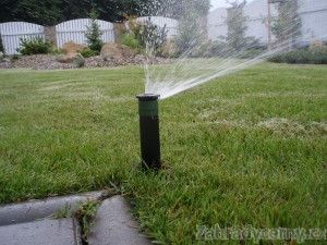 Při zavlažování trávníků se používají hlavně výsuvné postřikovače, které tlakem vody vysunou